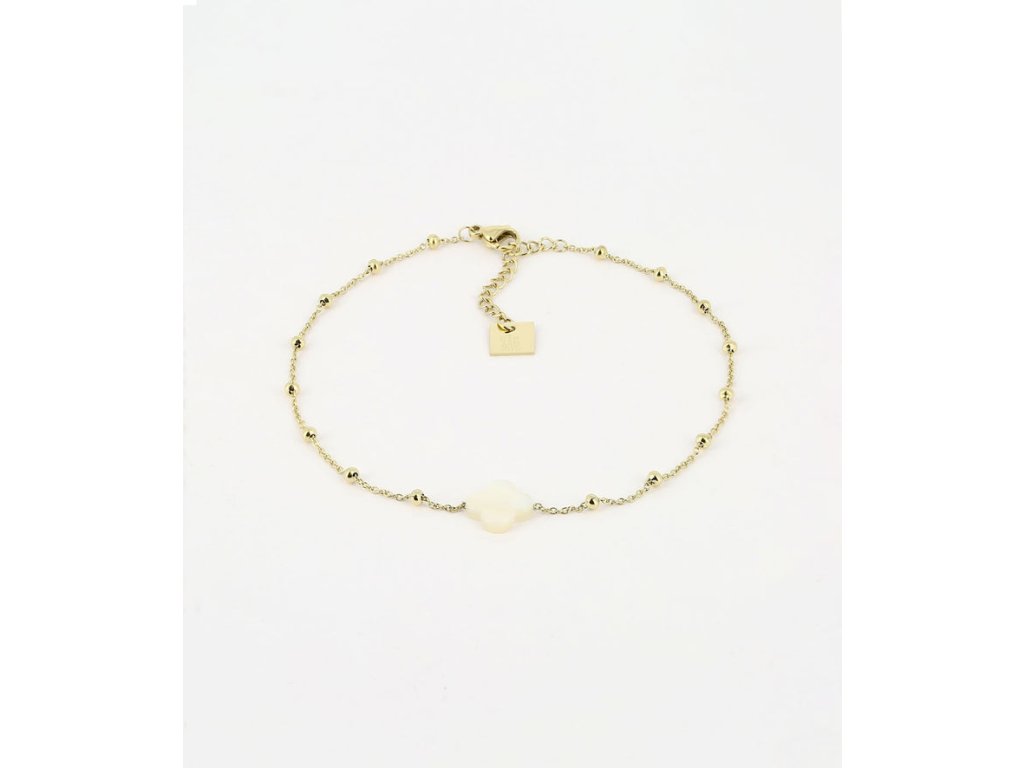 Náramok na nohu z ocele pozlátený zlatom s polodrahokamom v tvare kvetu.
