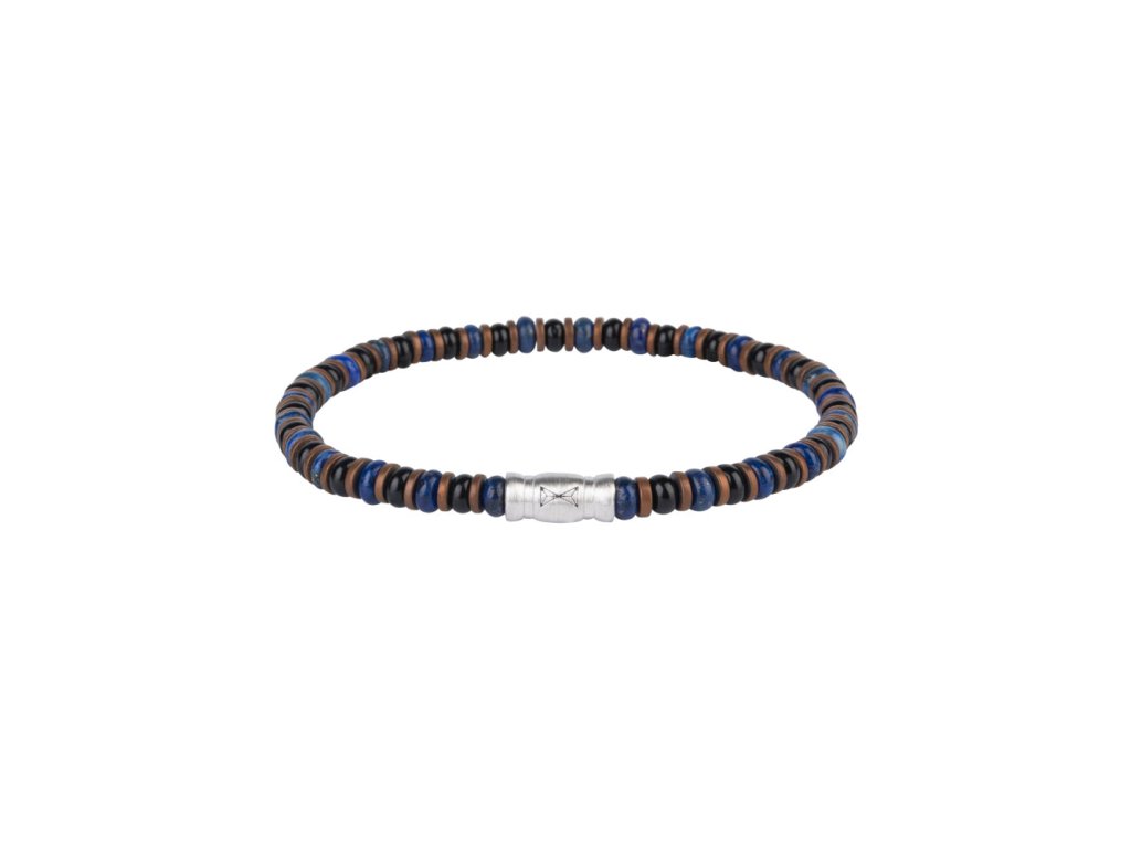 Tento náramok je vyrobený z kvalitných 4 mm drahokamov, ktoré sa skvele hodia k formálnemu aj bežnému oblečeniu. Vyrobené z hematitových diskov, čierneho obsidiánu a drahokamov Lapis Lazulli. Pevná elastická šnúrka drží tento náramok pohromade a zaisťuje pohodlné nosenie. Ukončené strieborným zámkom 925/1000.