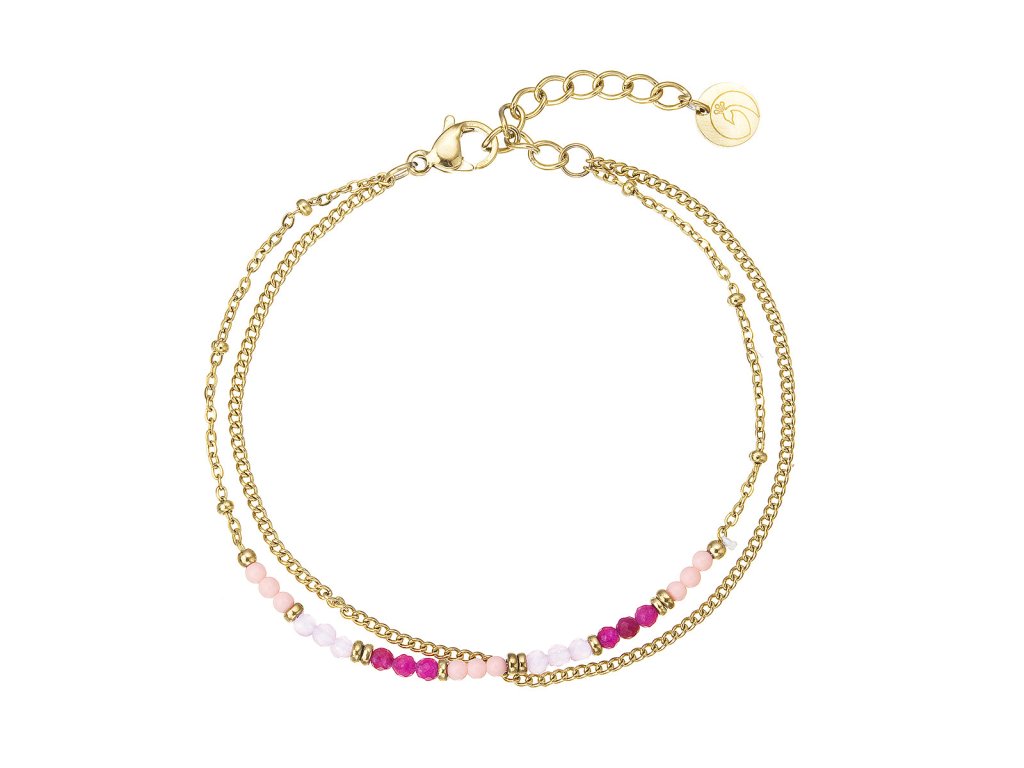 Náramok oceľový s pravými kameňmi 43069.3 ružový