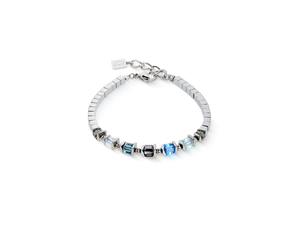 Kompaktný, čistý a plný žiary – náramok z kolekcie Sparkling Cubes Fusion Chain spája eleganciu nerezovej ocele v striebornom tóne s trblietavými krištáľmi Swarovski® v odtieňoch modrej a aqua. Hematitové kocky s povrchovou úpravou titánovým oxidom dodávajú dizajnu textúru a hĺbku, čím vytvárajú moderný a výrazný kontrast. Inšpirovaný trendom Sparkling Moments, tento náramok je ideálnym doplnkom na každý deň, ktorý pritiahne pozornosť.
