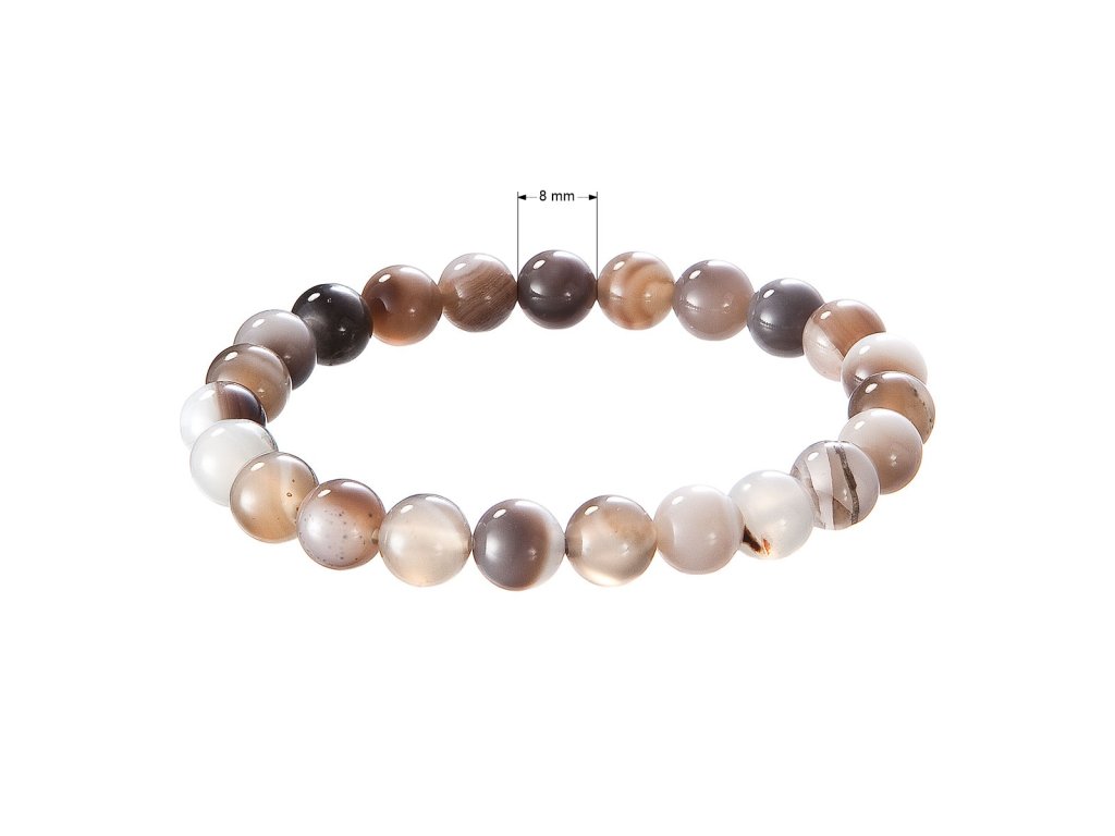 Elegantný náramok z prírodného hnedého achátu zaujme svojou paletou teplých farebných odtieňov – od jemne béžovej cez karamelovú až po sýto čokoládovú. Korálky s priemerom 8 mm majú hladký, lesklý povrch a vytvárajú harmonický celok, ktorý pôsobí prírodne, zemito a pokojne. Každá korálka je originálna svojim sfarbením aj vnútornou kresbou, čo robí z každého náramku jedinečný doplnok s vlastnou energiou.