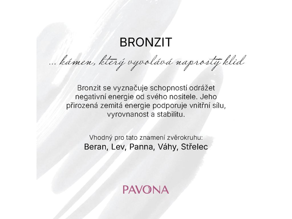 Bronziť je kameň vnútornej sily, odvahy a ochrany . Pomáha zvládať náročné situácie so stabilitou a rozvahou, posilňuje rozhodnosť a zároveň chráni pred negatívnymi vplyvmi z okolia. Jeho uzemňujúca energia podporuje pokojnú myseľ, schopnosť jednať s rozvahou a dôveru v seba samého.