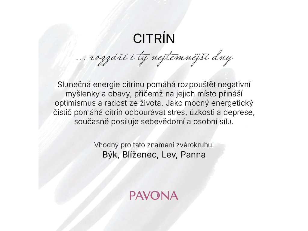 Náramok z pravého citrínu očarí svojou teplou zlatistou farbou, ktorá pripomína slnečné lúče. Namiesto klasických korálikov je zložený z oválnych kameňov s jemne brúsenými plochami, ktoré vytvárajú elegantný a harmonický celok. Vďaka elastickému prevedeniu sa náramok ľahko prispôsobí zápästiu a poskytuje pohodlné nosenie po celý deň. Slnečná energia citrínu pomáha rozpúšťať negatívne myšlienky a obavy, pričom na ich miesto prináša optimizmus a radosť zo života. Ako mocný energetický čistič pomáha citrín odbúravať stres, úzkosti a depresie, súčasne posilňuje sebavedomie a osobnú silu.