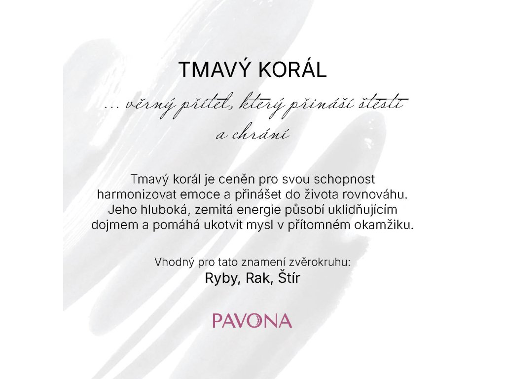 Náramok je navlečený na kartičke s popisom vlastností koralu a uložený v ochrannom sáčku.