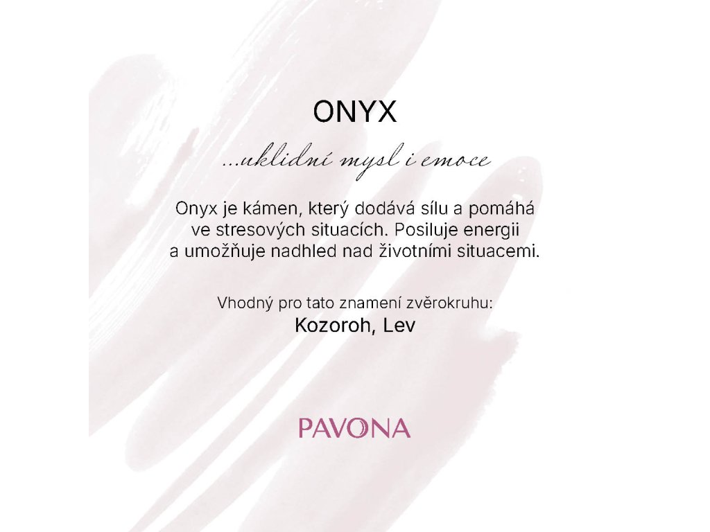 Štýlový náramok z pravého onyxu vyniká svojou nadčasovou eleganciou a silnou energiou. Namiesto klasických korálikov je zložený z oválnych kameňov s jemne brúsenými plochami, ktoré zaisťujú krásnu hru svetla. Onyx je kameň, ktorý dodáva silu a pomáha v stresových situáciách. Posilňuje energiu a umožňuje nadhľad nad životnými situáciami. Elastické prevedenie zaisťuje ľahké nosenie a pohodlné prispôsobenie zápästia.