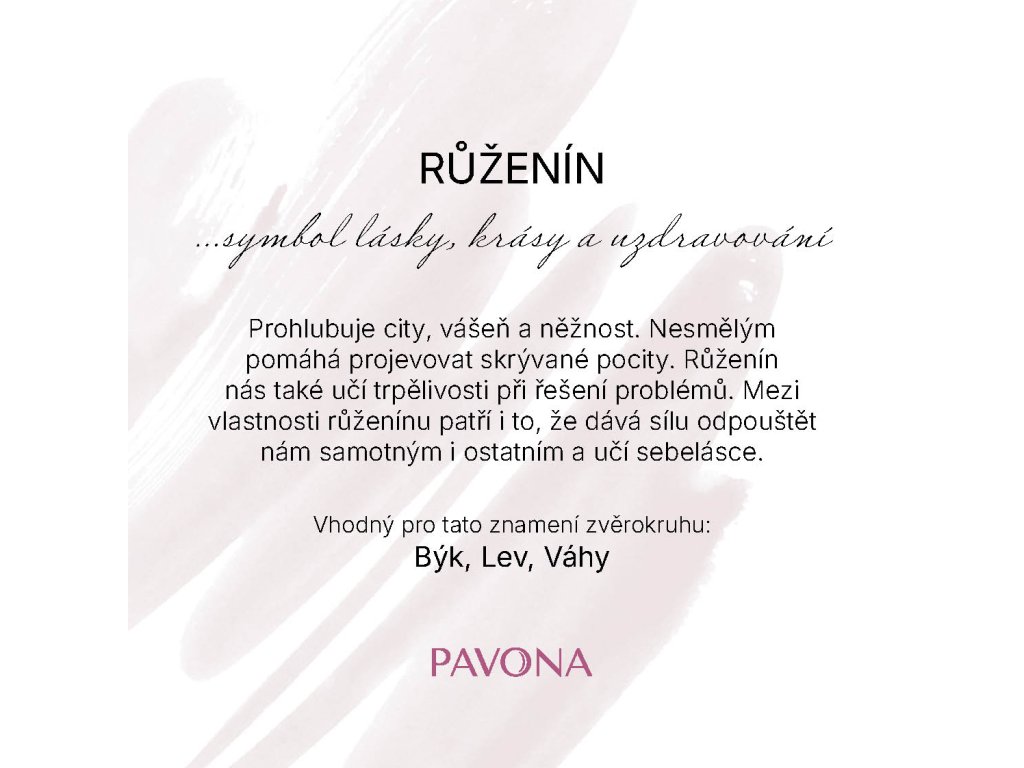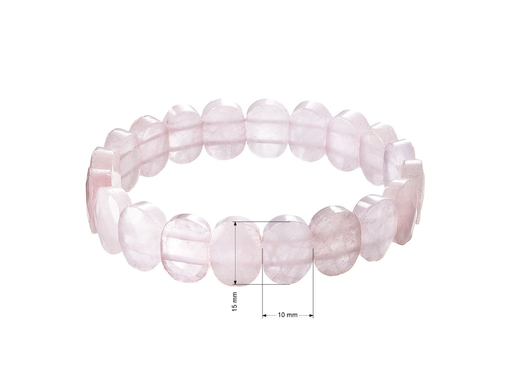 Jemný a elegantný náramok z pravého ruženínu je symbolom lásky, harmónie a nežnosti. Namiesto klasických korálikov je zložený z oválnych kameňov s jemne brúsenými plochami, ktoré majú krásny svetlo ružový odtieň, ktorý pôsobí romanticky a zároveň decentne. Prehlbuje city, vášeň a nežnosť. Nesmelým pomáha prejavovať skrývané pocity. Ruženín nás tiež učí trpezlivosti pri riešení problémov. Medzi vlastnosti ruženínu patrí aj to, že dáva silu odpúšťať nám samotným aj ostatným a učí sebaláske. Elastické prevedenie zaisťuje ľahké nosenie a pohodlné prispôsobenie zápästia.