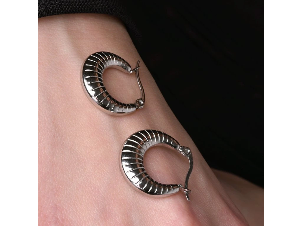 Náušnice ISMARA zaujmú svojim elegantným dizajnom a masívnou štruktúrou. Kruhový tvar s čiarkovanou štruktúrou dodáva šperku unikátny vzhľad, ktorý sa perfektne hodí na každú príležitosť. Ich výrazný štýl je ideálny pre tých, ktorí chcú vyniknúť. Vďaka striebornej farbe sa ľahko kombinujú s rôznymi outfitmi a dodajú im šmrnc.
