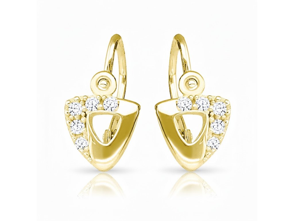 Náušnice pre bábätká, trojuholníky, žlté 14K zlato, číre zirkóny 23900101319_0,85g
