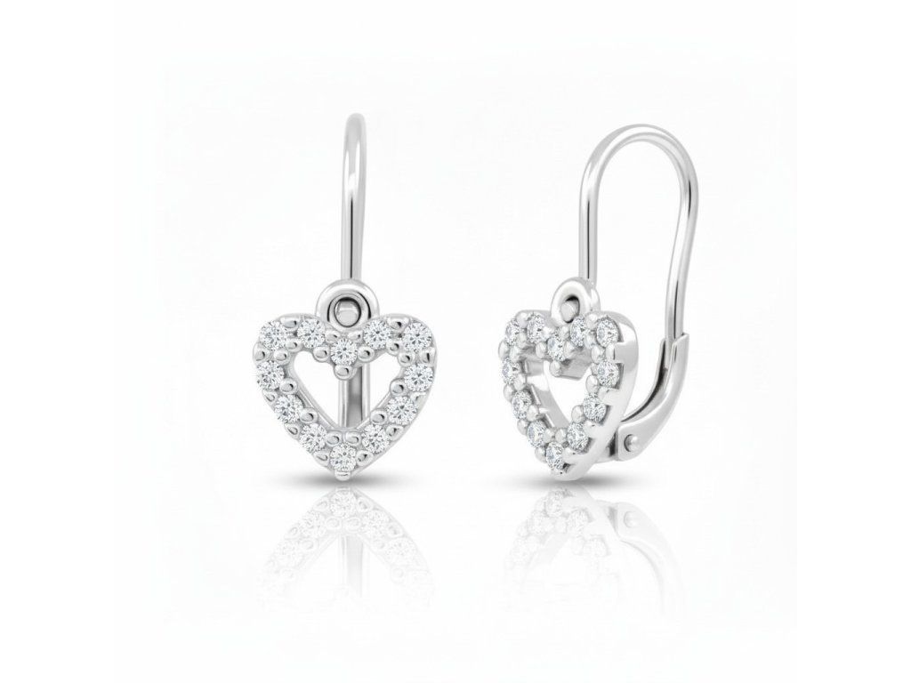 Náušnice pre bábätká z bieleho zlata osadené čírymi zirkónmi - srdiečka