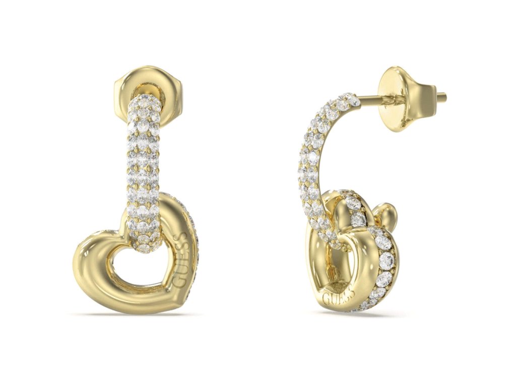 Náušnice so srdiečkovým príveskom a zirkónmi GUESS L.O.V.E. JUBE05465JWYGT