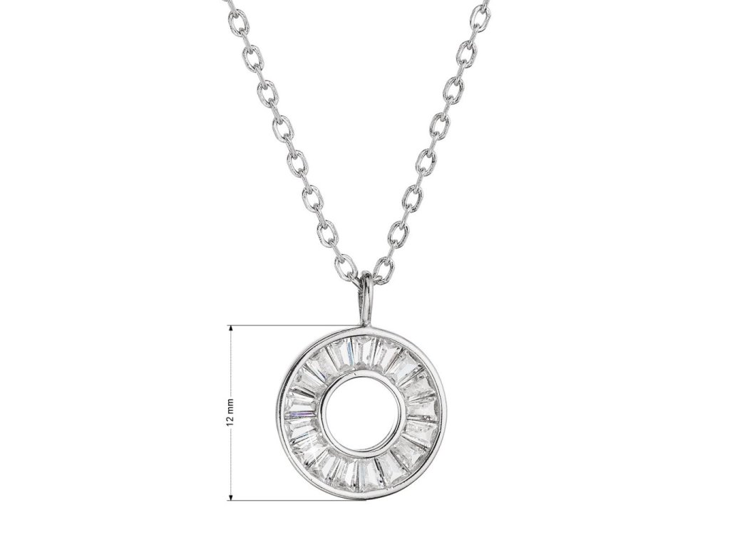 Strieborný náhrdelník je vyrobený zo striebra o rýdzosti 925/1000 s povrchovo úpravou ródiom. Na retiazke je okrúhly prívesok s trblietavým zirkónom v bielej farbe. Šperk neobsahuje nikel , a tak je vhodný pre citlivé osoby aj pre alergikov.