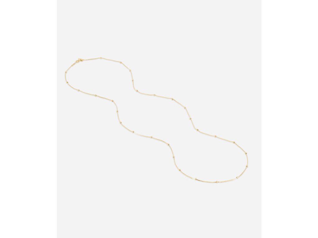 Oceľový pozlátený náhrdelník osadený malými oceľovými guličkami.