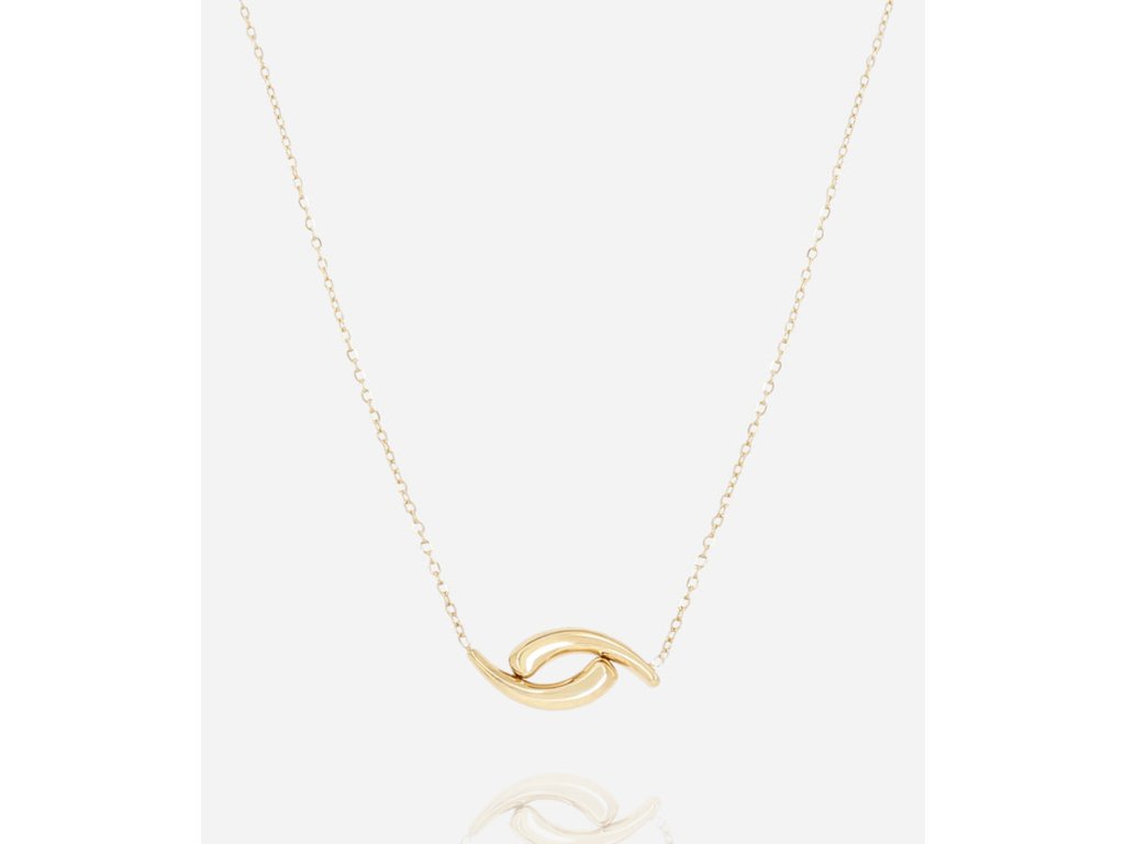 Náhrdelník z ocele pozlátený s príveskom z dvoch prekrývajúcich sa oblúkov.