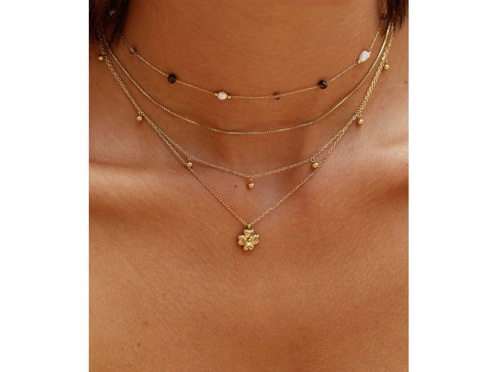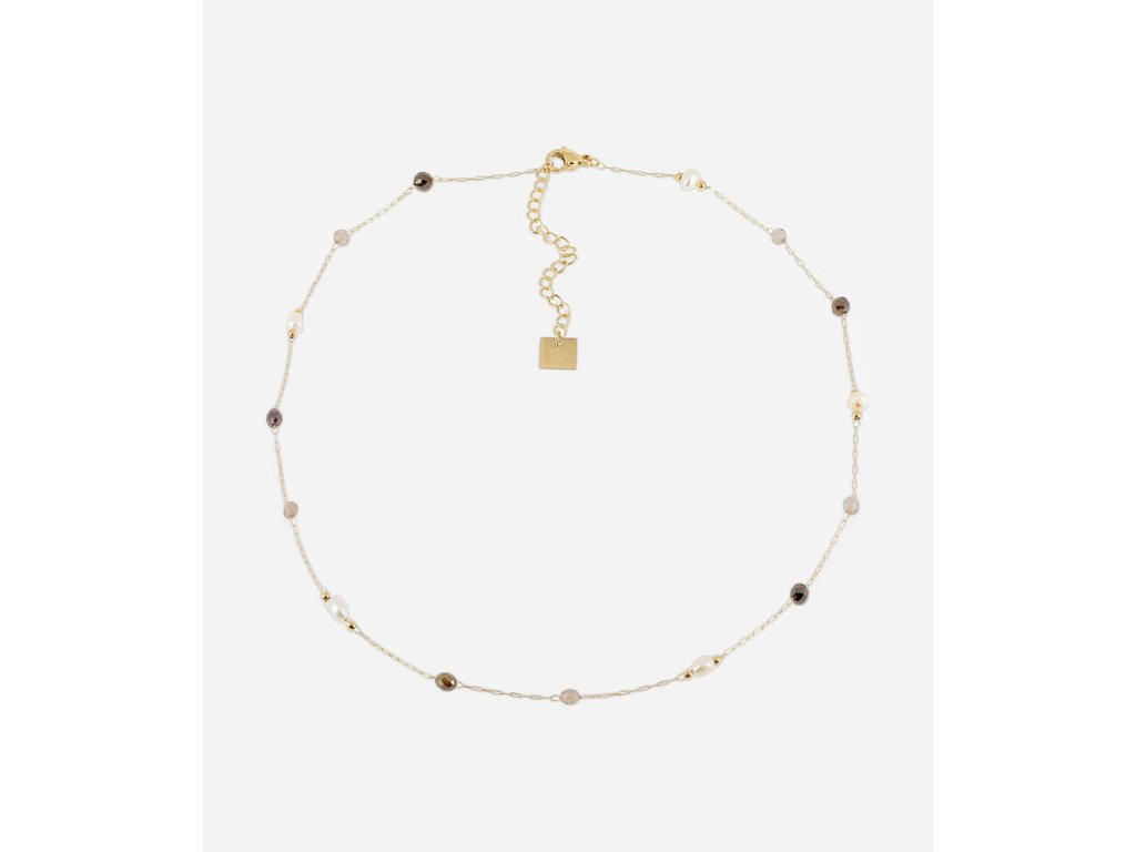 Náhrdelník z ocele pozlátený jemným zlatom osadený zmesou malých kameňov.