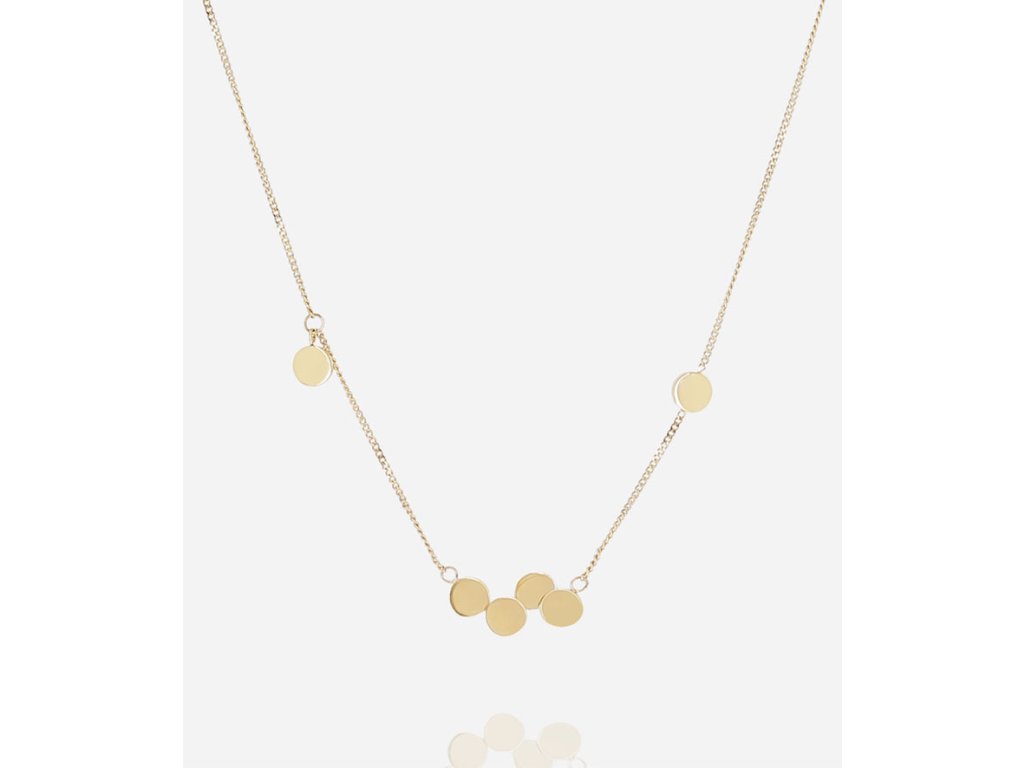 Náhrdelník z hladkej ocele , pozlátený s malými oceľovými krúžkami vsadenými do retiazky.