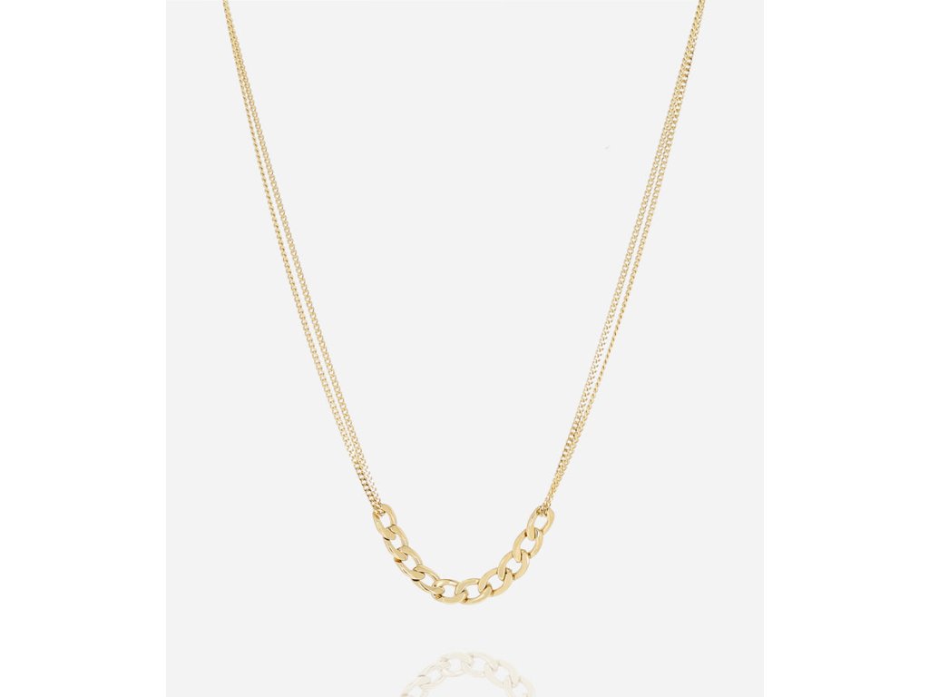 Náhrdelník z ocele pozlátený. Je osadený radom očiek v strede.