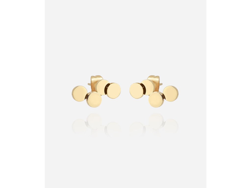 Náušnice z hladkej ocele osadené jemným zlatom a malými oceľovými krúžkami.