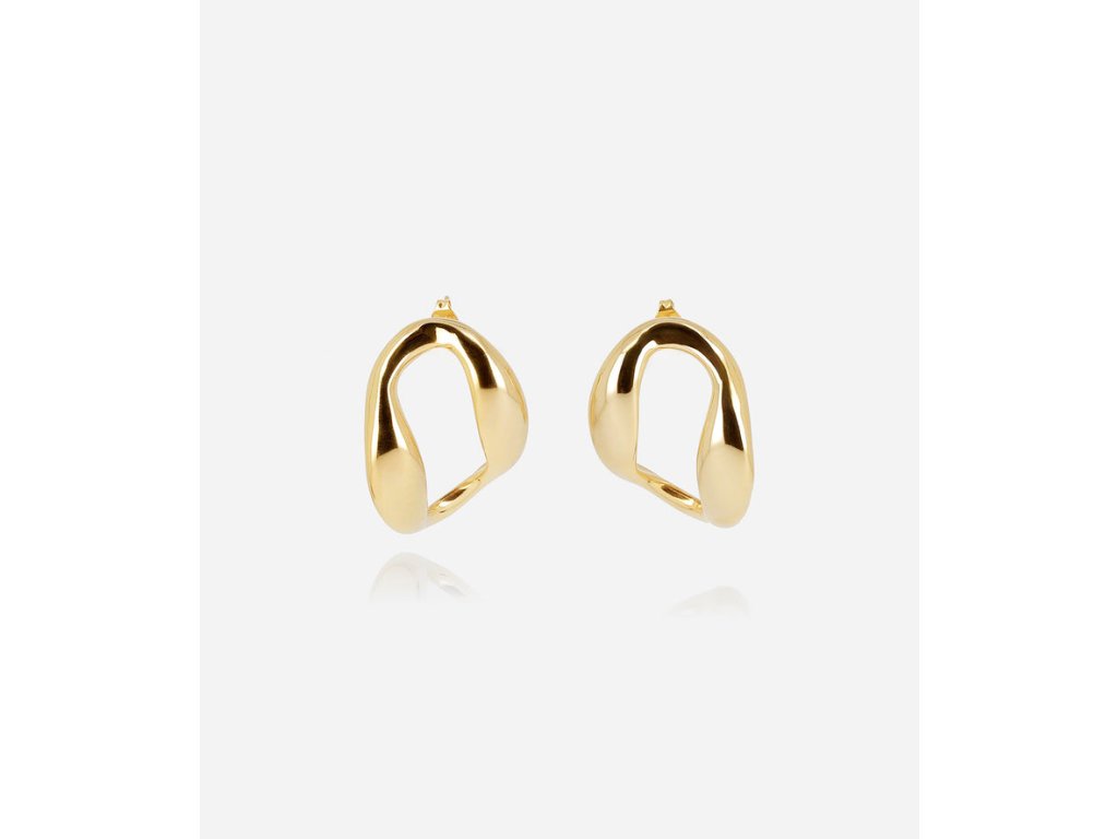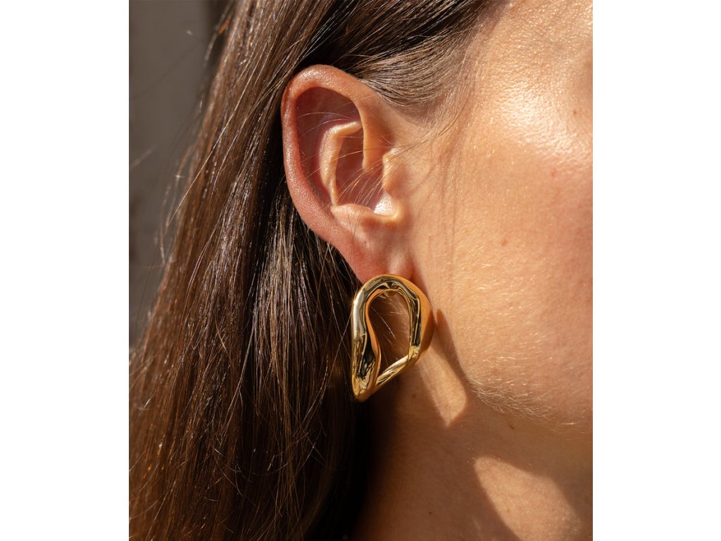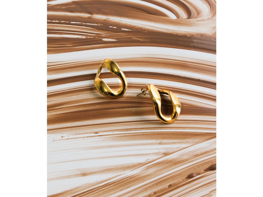 Geometrické náušnice z hladkej ocele pozlátené rýdzym zlatom.
