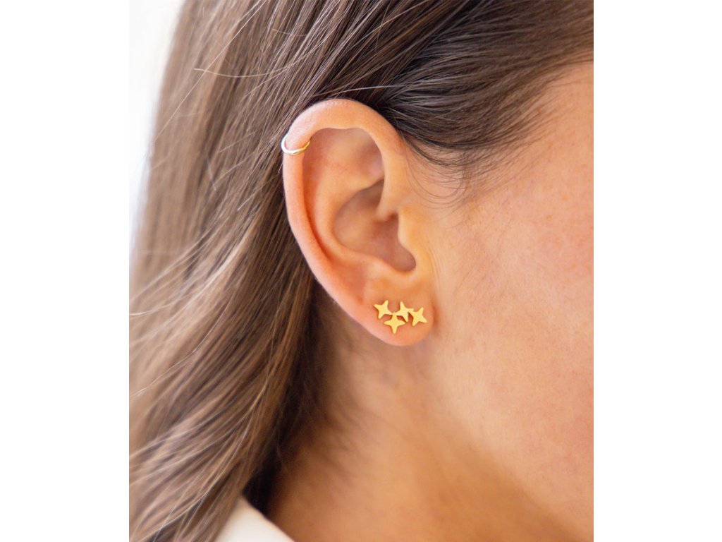 Náušnice z hladkej ocele osadené malými oceľovými hviezdičkami.