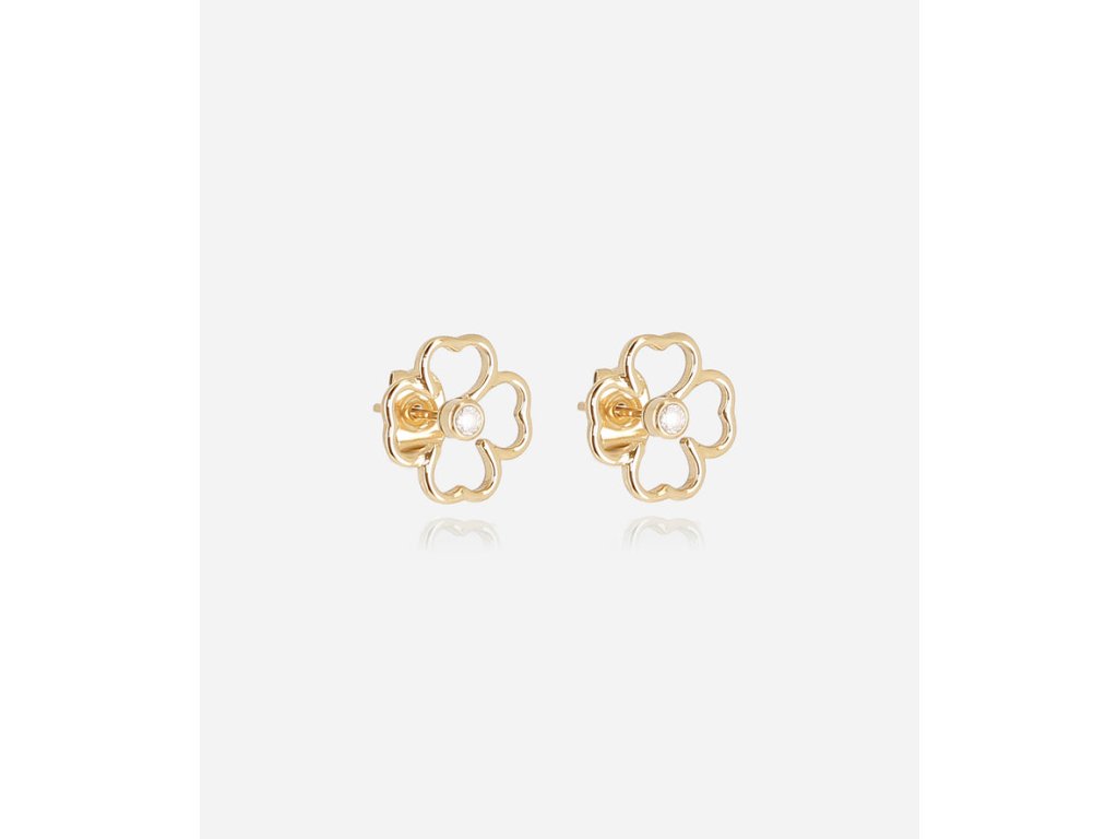 Napichovacie náušnice z ocele pozlátené s oceľovým kvetom v strede, v ktorom je osadený zirkón.