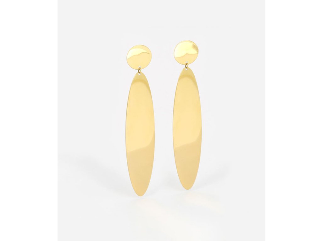 Dlhé náušnice z ocele pozlátené jemným zlatom v geometrickom tvare.