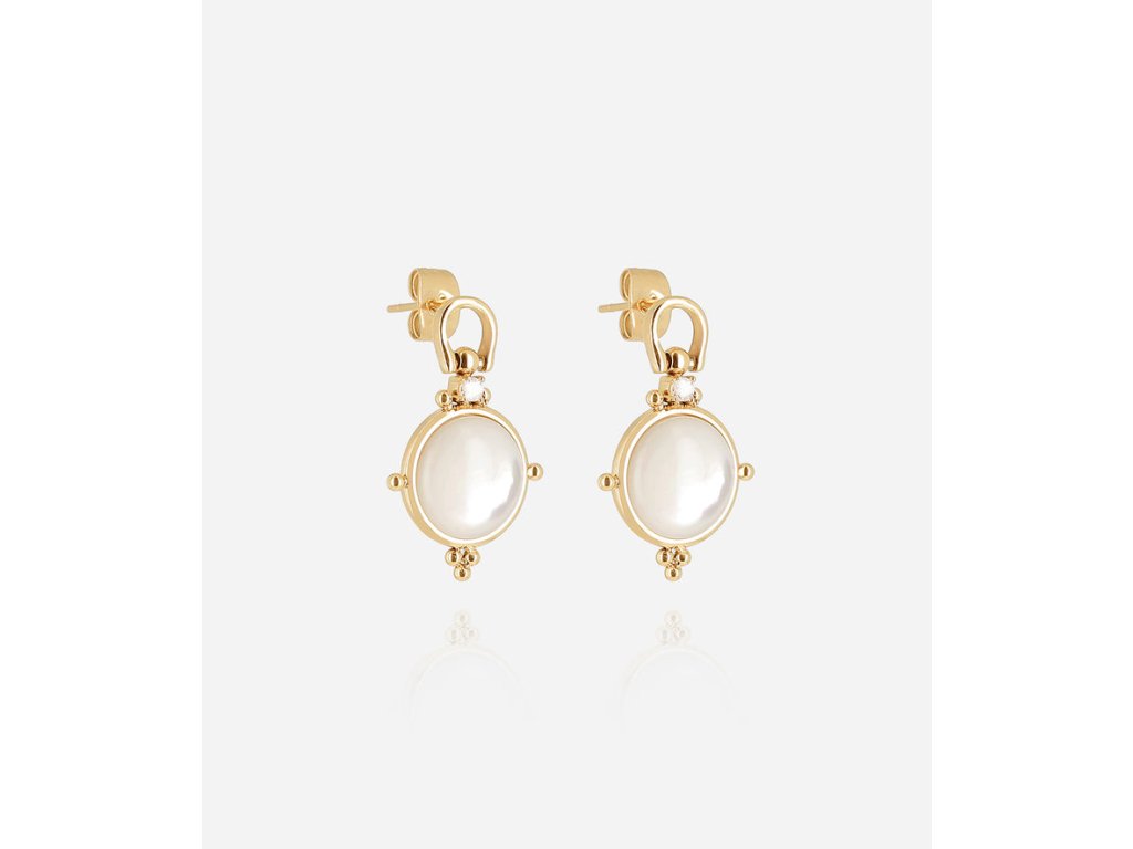 Náušnice z hladkej ocele s ionizovaným pozlátením osadené oválnym príveskom s perleťou.