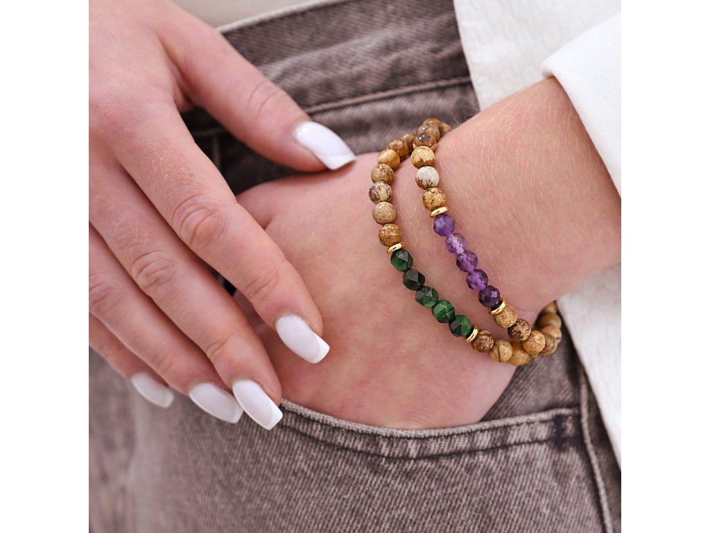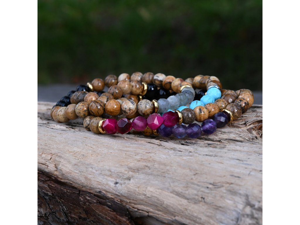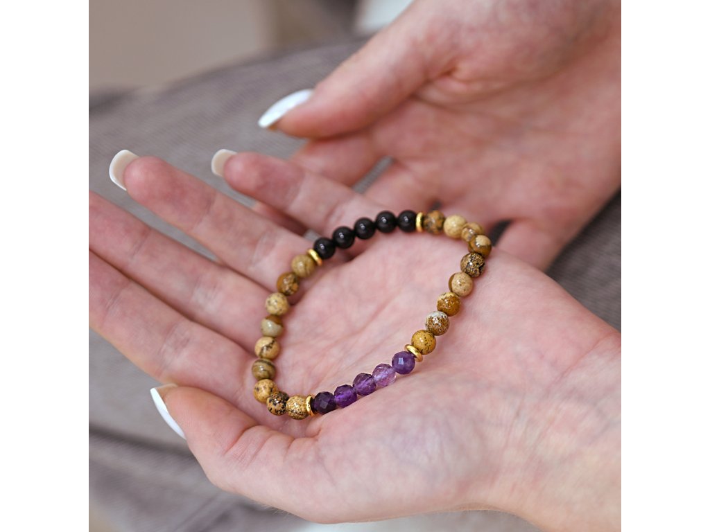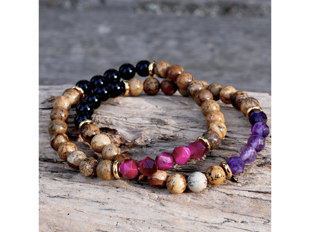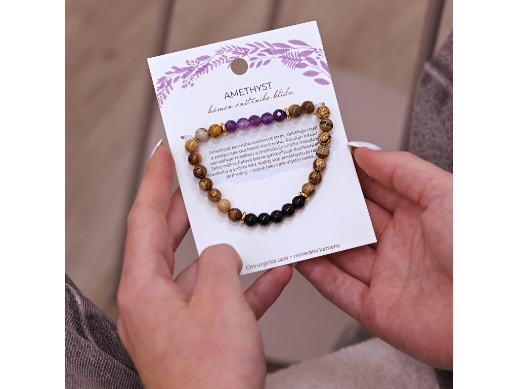 Oceľový náramok s minerálnymi kameňmi achát, jaspis, ametyst 43080.3