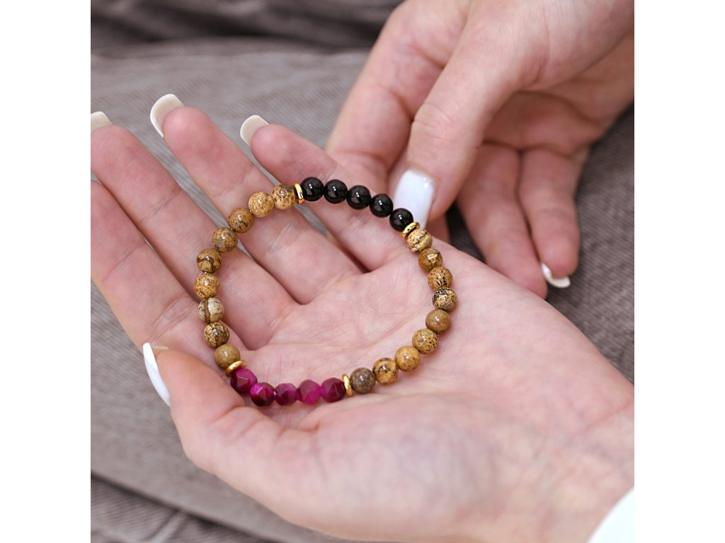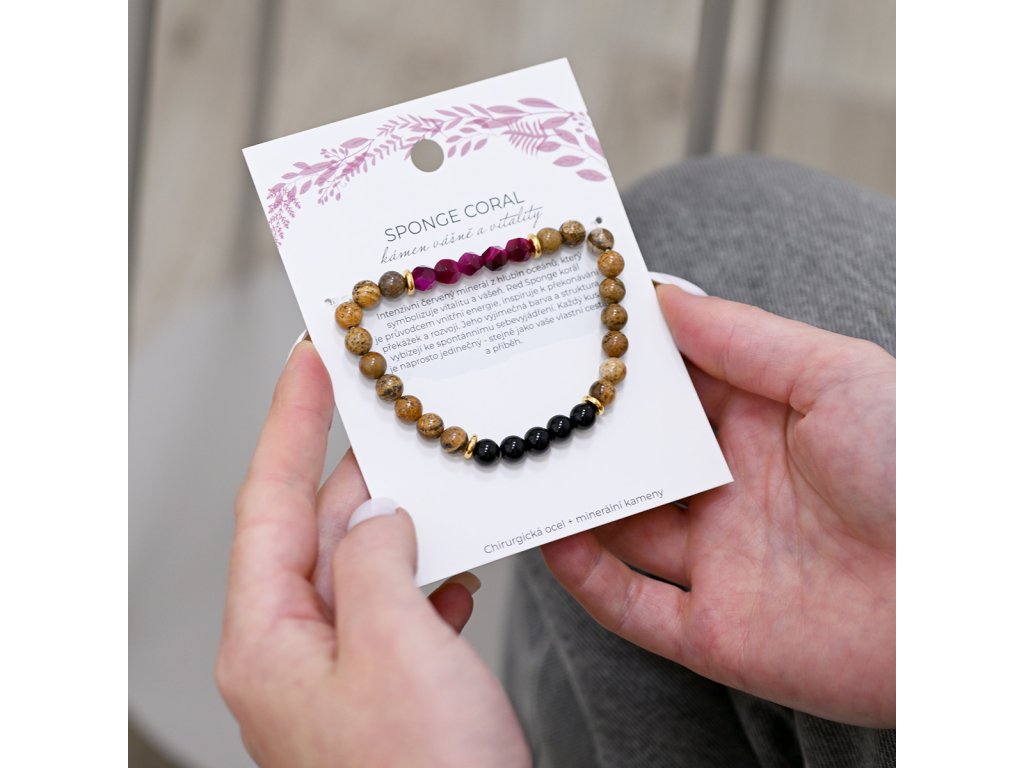 Oceľový náramok s minerálnymi kameňmi achát, jaspis, sp. koral 43080.3