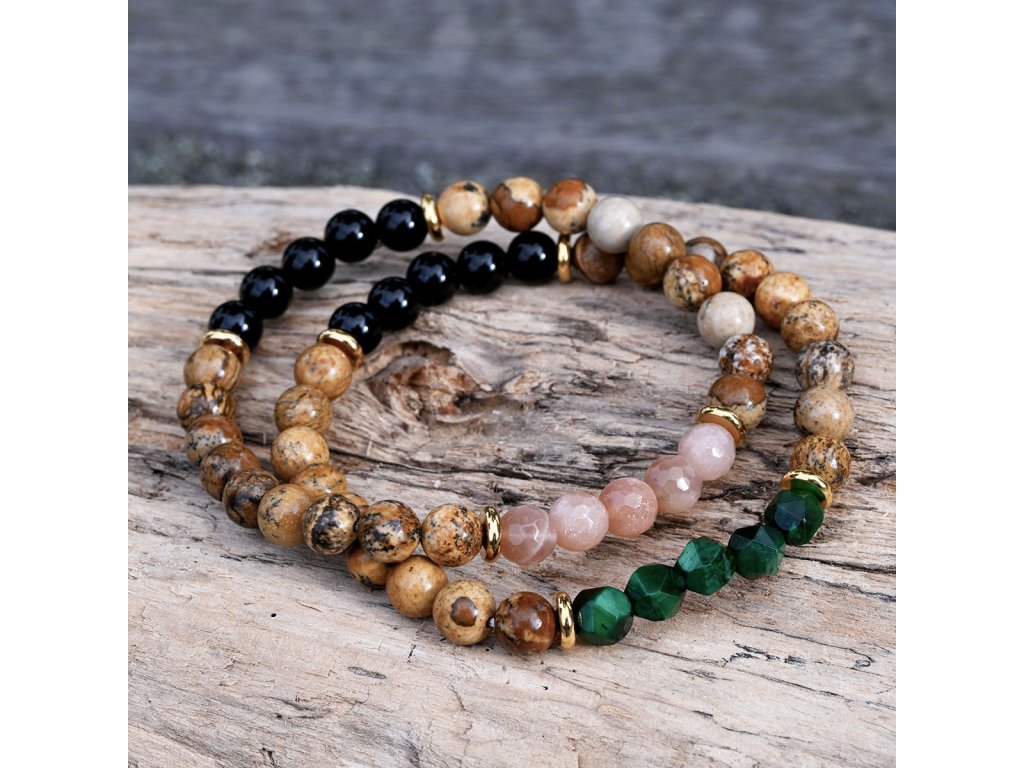 Oceľový náramok s minerálnymi kameňmi achát, jaspis 43080.3