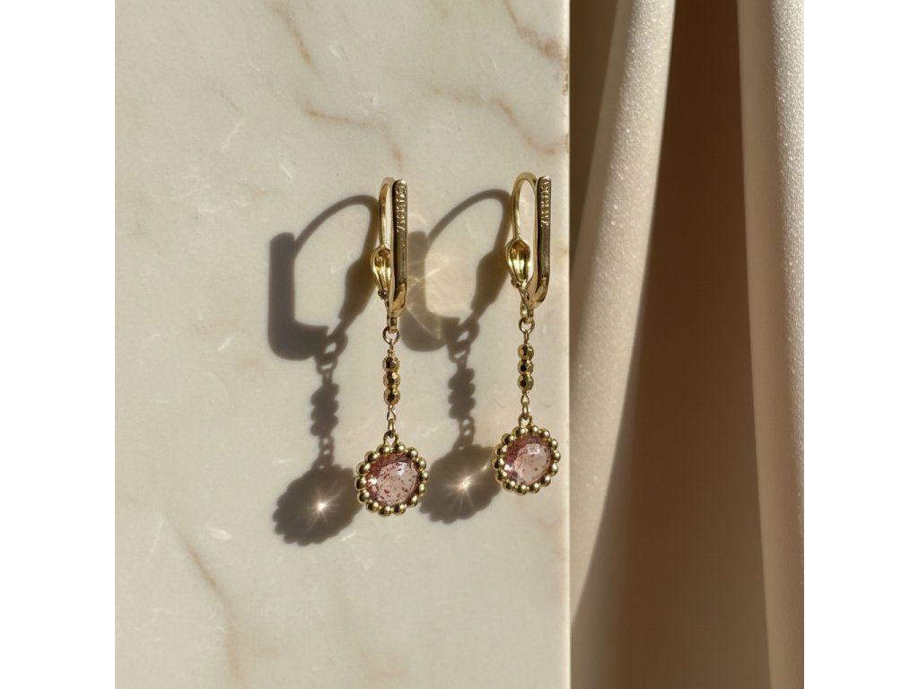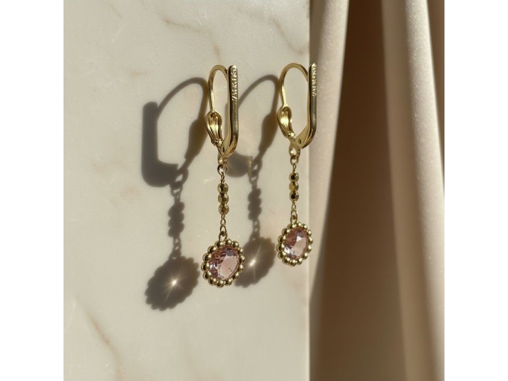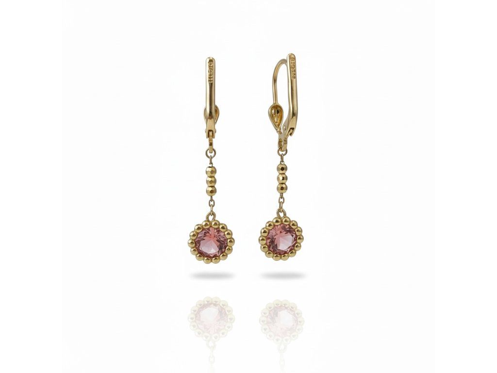 Okrúhle visiace náušnice s Ruženínom zo 14K zlata
