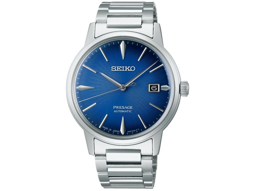 Elegantné pánske automatické hodinky Seiko SRPJ13J1 z kolekcie Presage Cocktail Time prinášajú kombináciu japonskej hodinárskej precíznosti, výrazného štýlu a kokteilovej inšpirácie. Model The Aviation vyniká sýtomodrým ciferníkom, ktorý pripomína farbu rovnomenného drinku, a zaujme každého milovníka klasickej elegancie.