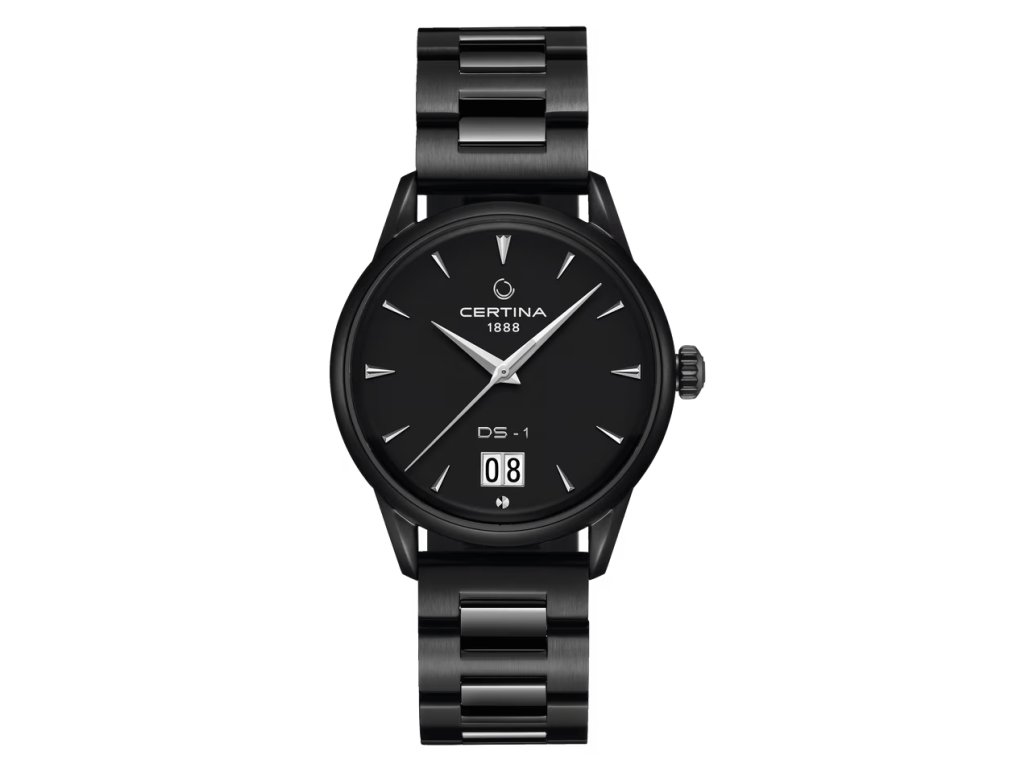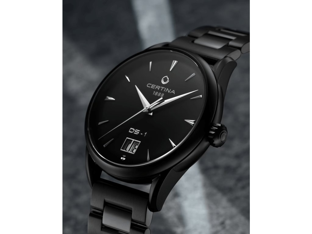 Minimalizmus a technická presnosť v dokonalej harmónii – model Certina DS-1 Big Date v čiernom prevedení zaujme na prvý pohľad.