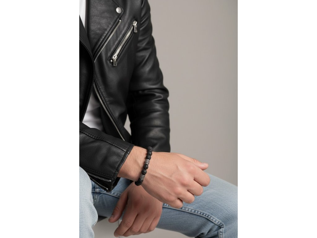 Pánsky oceľový náramok s ónyxovými guličkami Amorino KM207131056A40