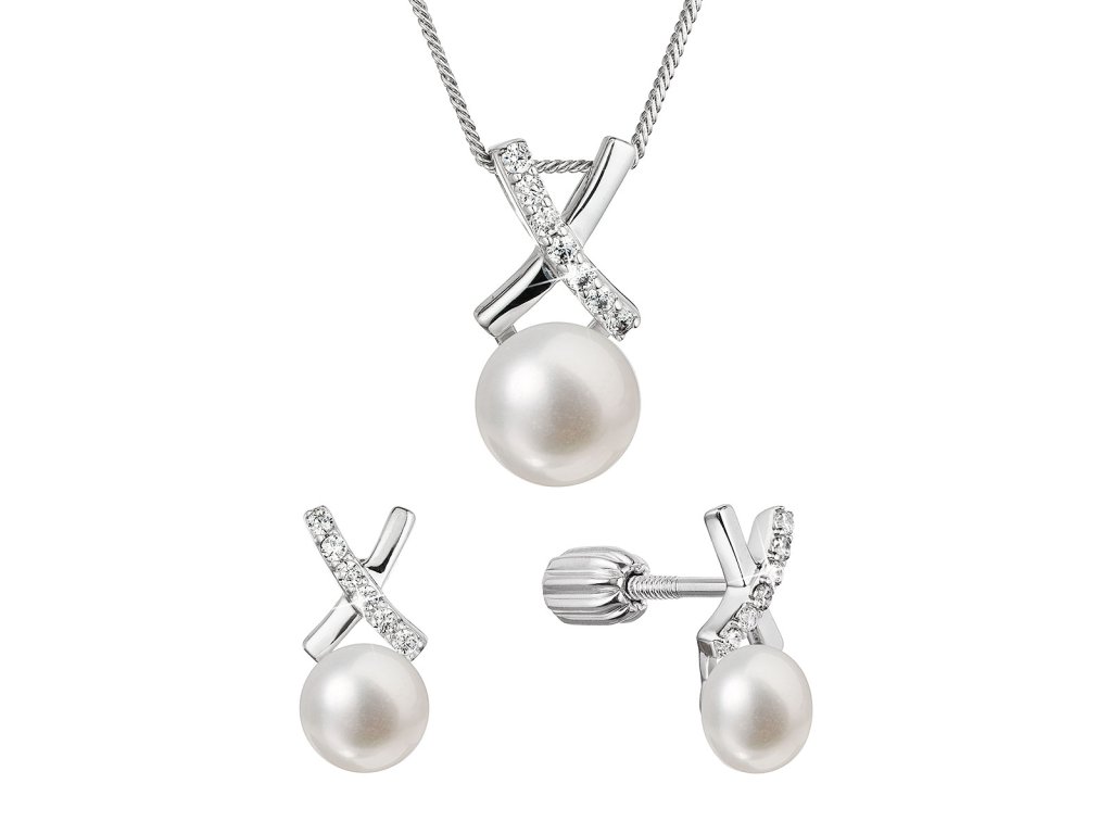 Perlová súprava "X" so zirkónmi a bielou riečnou perlou 29068.1B