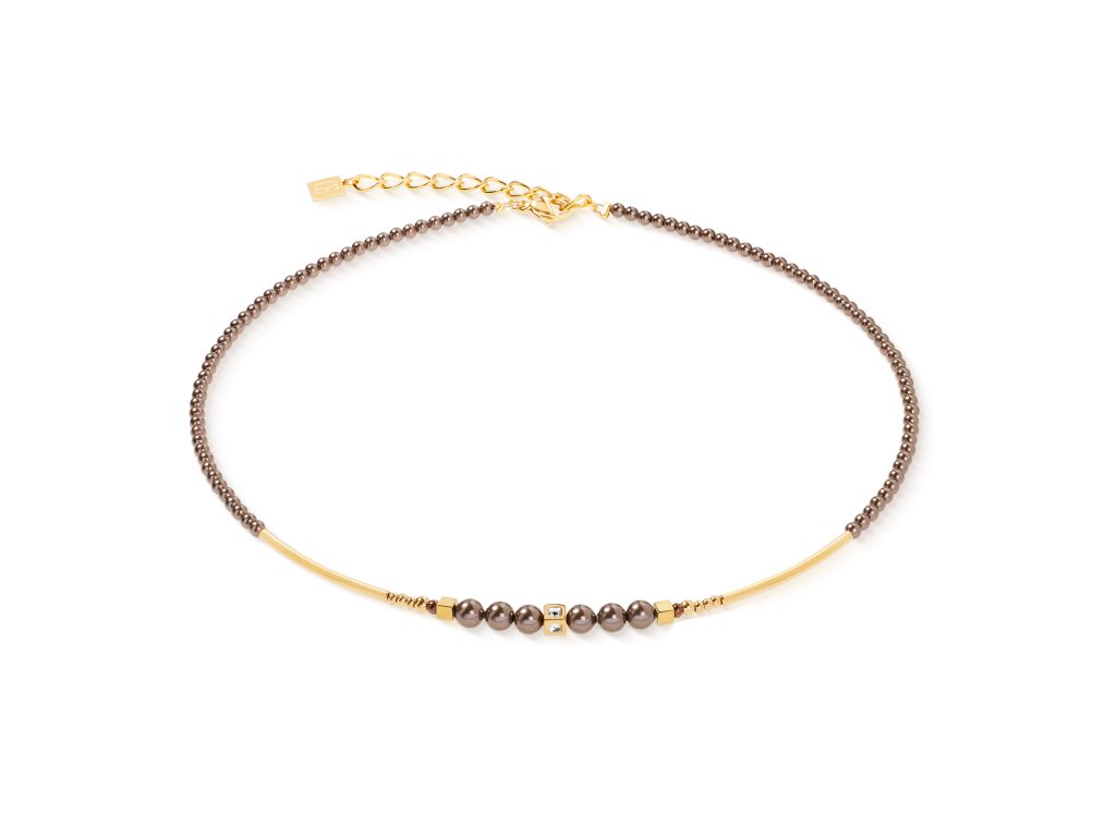 Náhrdelník Shimmering Princess Pearls gold-brown spája vzácne Swarovski® Crystal Pearls s korálkami z hematitu s titánovou povrchovou úpravou a kockou z pozlátenej nerezovej ocele, v ktorej je zasadený žiarivý krištáľ. Kombinácia hrejivých zlatých tónov a trblietavých hnedých odtieňov vytvára modernú eleganciu, ktorá vynikne pri každodennom nosení aj pri špeciálnych príležitostiach.