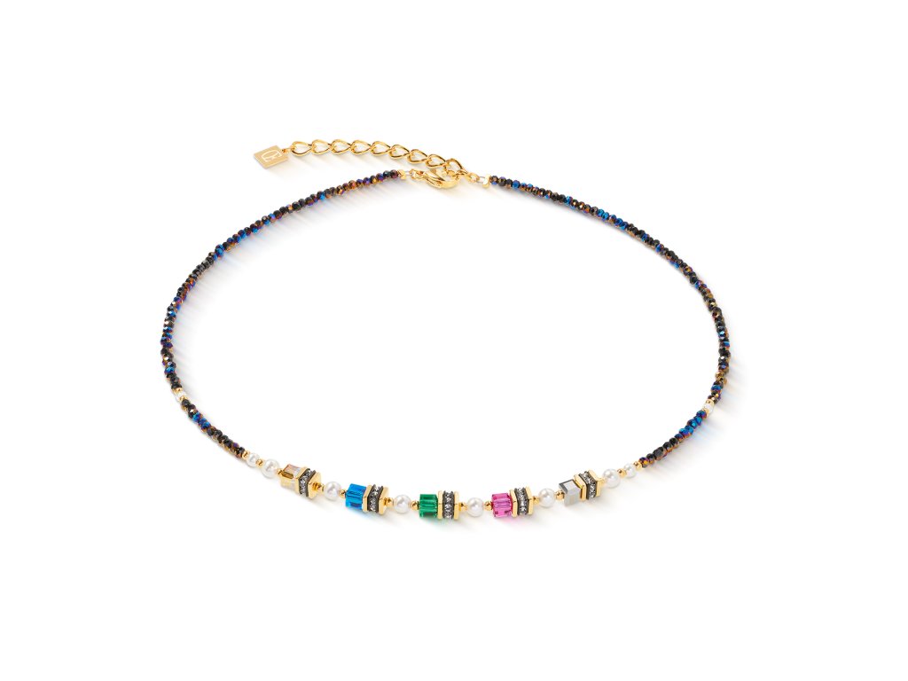 Žiarivá modrá, sýta zelená, výrazná ružová a čistá biela sa prelínajú so zlatistými detailmi a vytvárajú kompozíciu, ktorá pripomína kráľovskú eleganciu. Precízne usporiadanie jednotlivých prvkov dodáva náhrdelníku ľahkosť a zároveň výraznosť – je to šperk plný žiary, ktorý pozdvihne každý outfit a spája slávnostnú noblesu s moderným dizajnom.