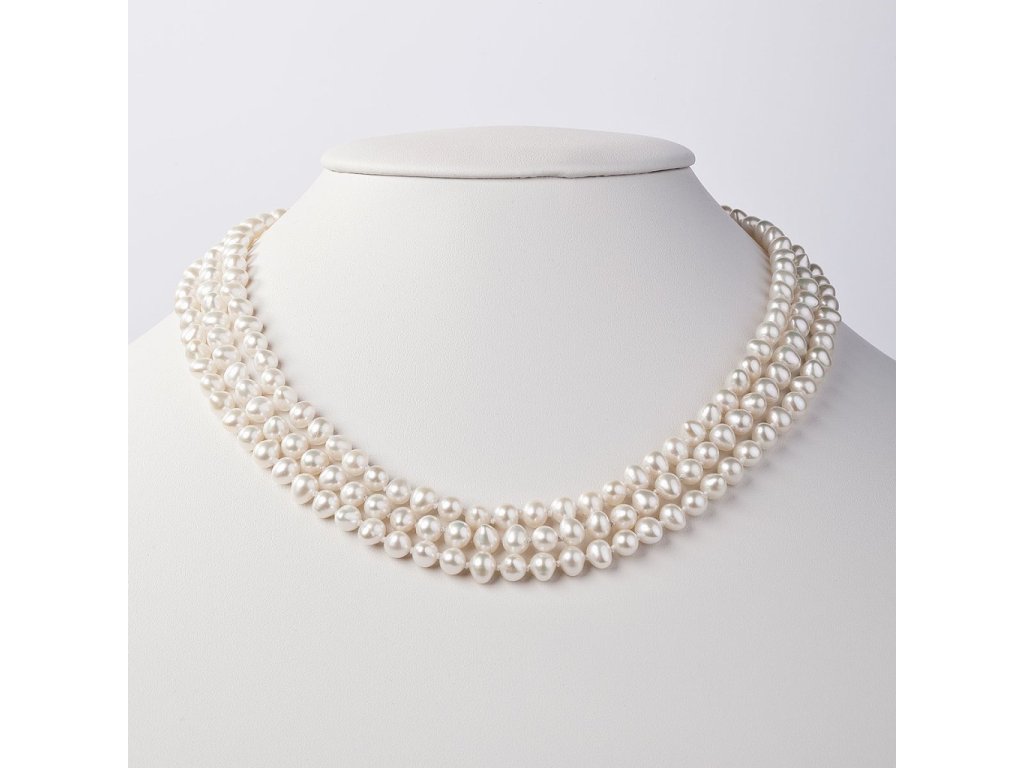 Perlový náhrdelník trojradový z pravých riečnych perál biely 22035.1
