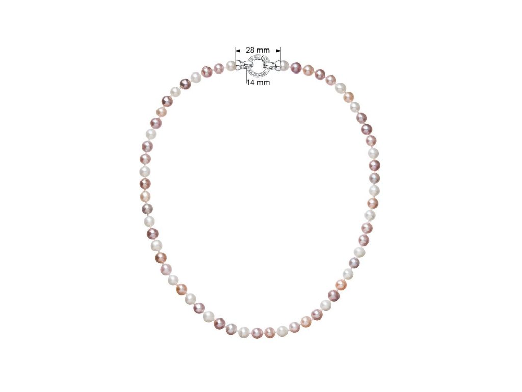 Perlový náhrdelník 22004.3 o celkovej dĺžke 45 cm sa skladá z celkom 60 pravých riečnych periel v rôznych farbách jemných tónov. Každá perla je zaistená uzlíkovou väzbou, a tak sa pri nechcenom pretrhnutí náhrdelníka nestane, že sa vám perly rozkotúľajú na všetky strany. Zaujímavo riešené guľaté strieborné zapínanie zdobené niekoľkými trblietavými zirkónmi dodáva náhrdelníku eleganciu. Striebro použité na zapínanie má rýdzosť 925/1000 a ródiovú povrchovú úpravu. Náhrdelník neobsahuje nikel, a tak ho môžu bez obáv nosiť aj alergici.