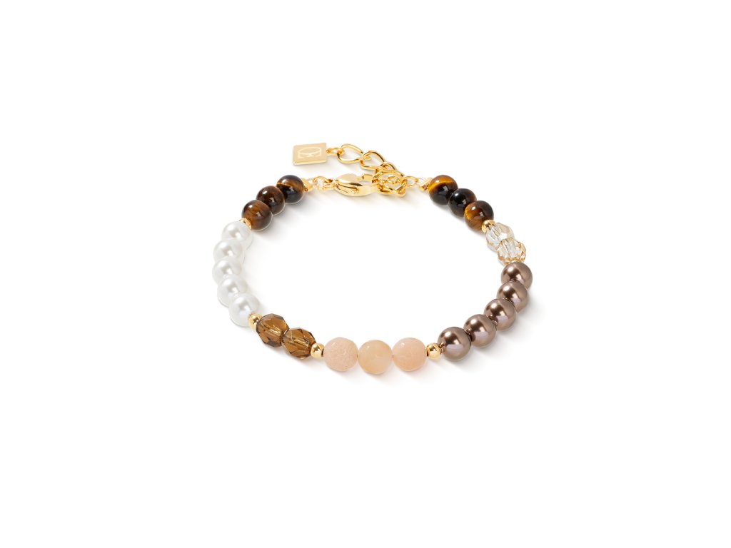 Perlový náramok s tigrím oko, slnečným kameňom a Swarovski krištáľmi COEUR DE LION 4244301100