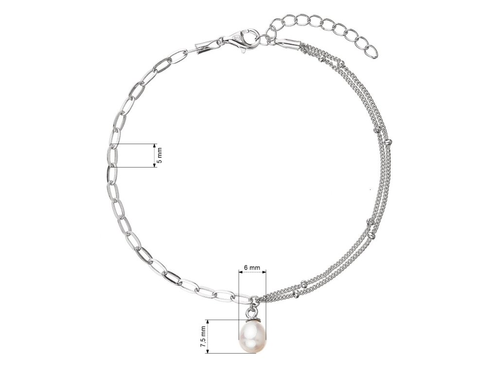 Náramok 23014.1 je vyrobený zo striebra rýdzosti 925/1000 , ktoré prešlo povrchovou úpravou ródiom. Ródium chráni šperk proti sčerneniu, zožltnutiu i poškriabaniu. Retiazkový náramok je ozdobený oválnou bielou riečnou perličkou o veľkosti 7,5 x 6 mm a kvality A . Keďže šperk neobsahuje žiadny prídavok niklu , môžu ho bez obáv nosiť aj alergici.