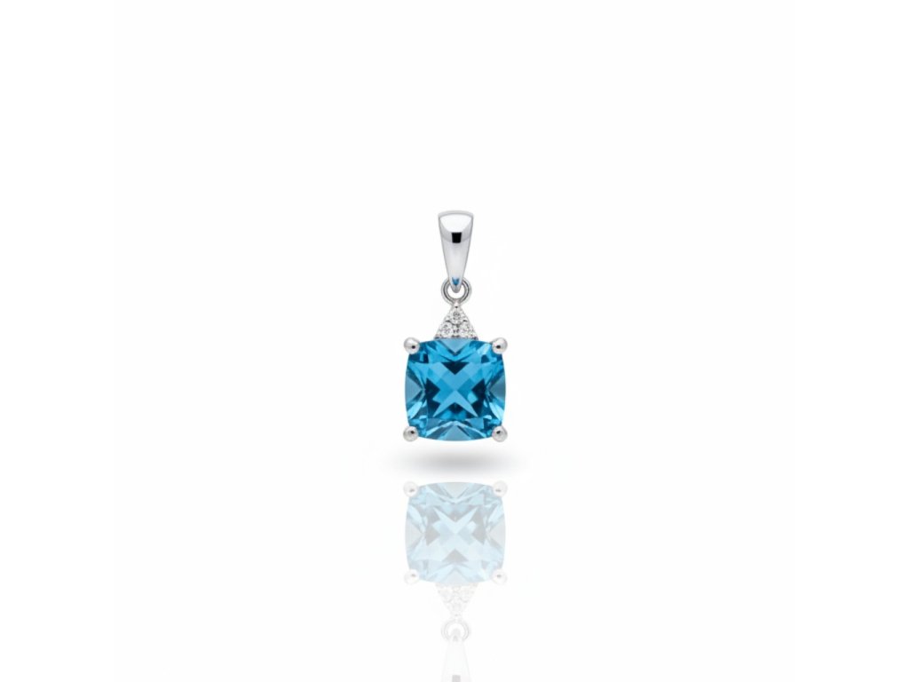 Pôvabný prívesok z 14K bieleho zlata - blue topaz a brilianty