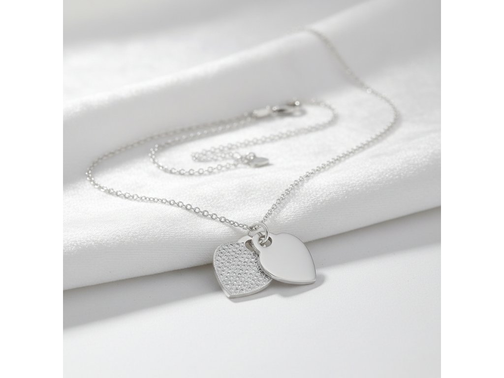 Pôvabný strieborný náhrdelník s dvojitým srdcom NZB100469