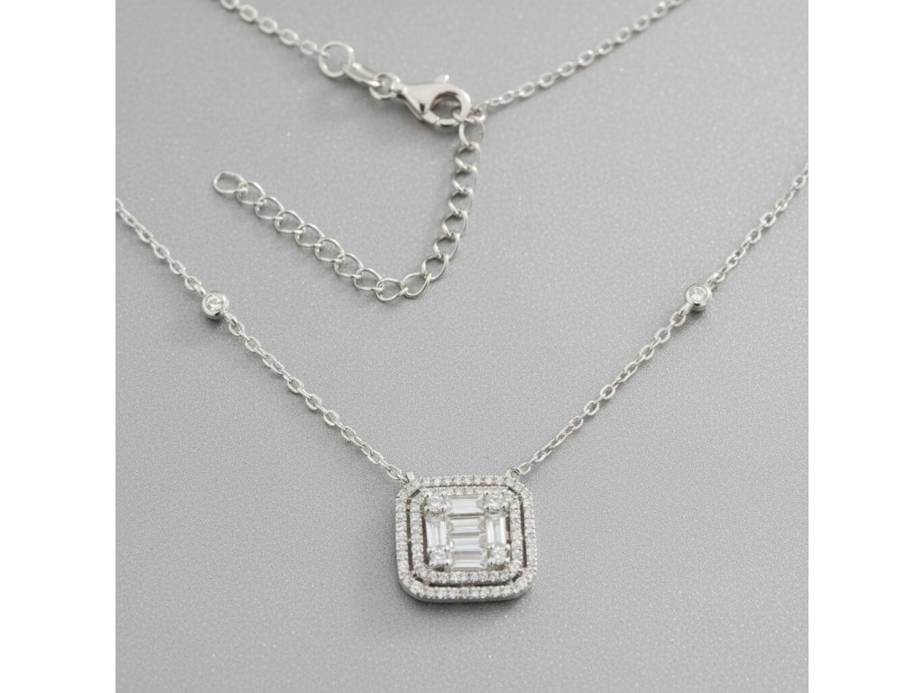 Pôvabný strieborný náhrdelník s výrazným štvorcovým zirkónom NZB109273