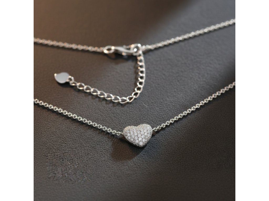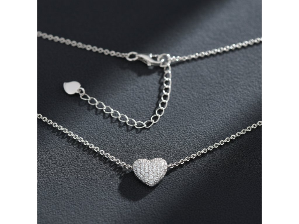 Pôvabný strieborný náhrdelník so zirkónovým srdcom NZB100039