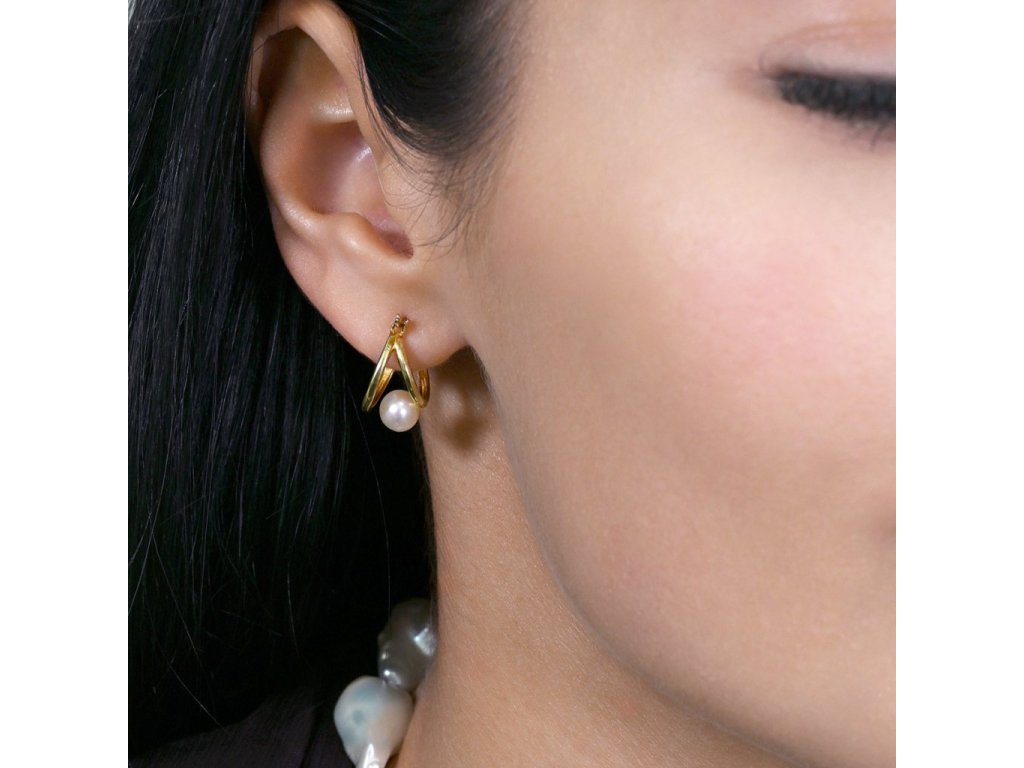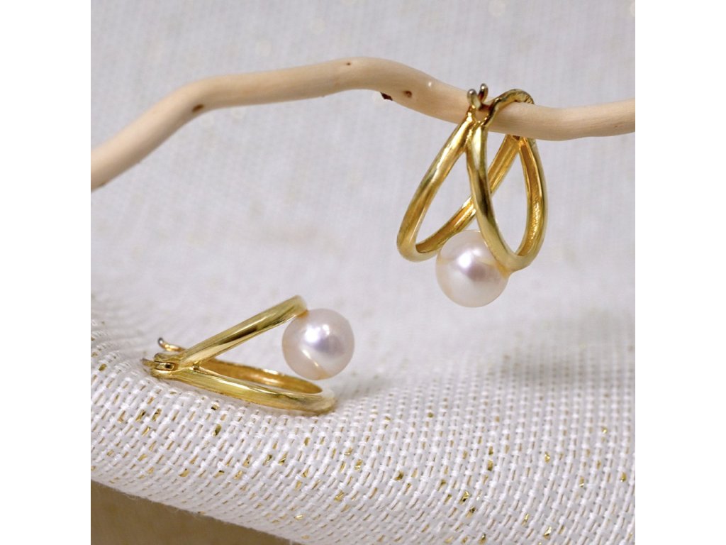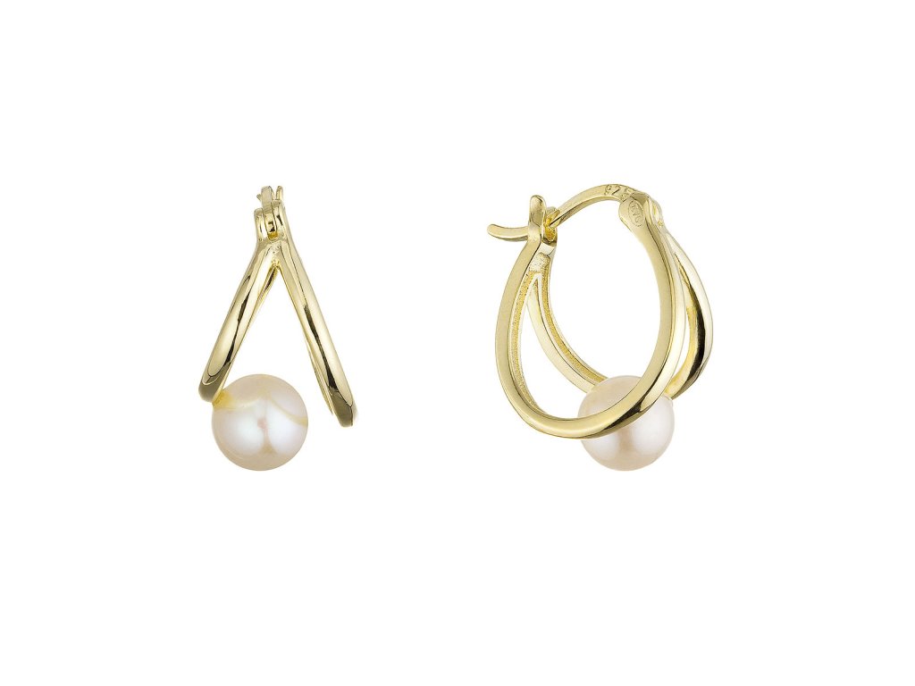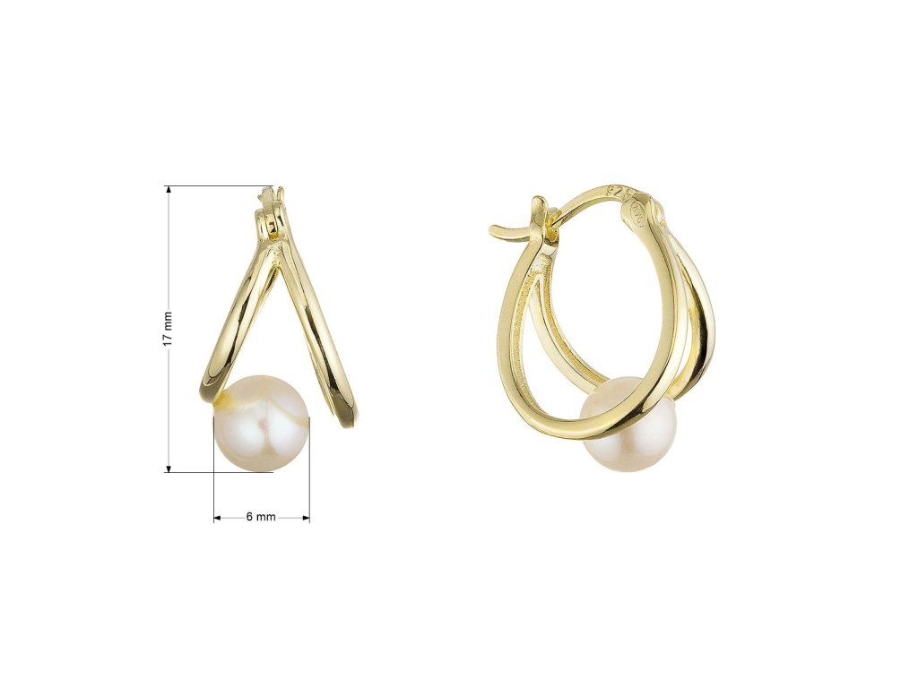 Pozlátené náušnice kruhy s bielou riečnou perlou 21130.1