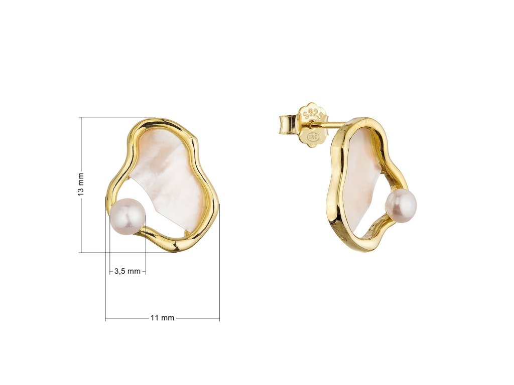 Pozlátené náušnice nepravidelného tvaru s riečnou perlou 21120.1
