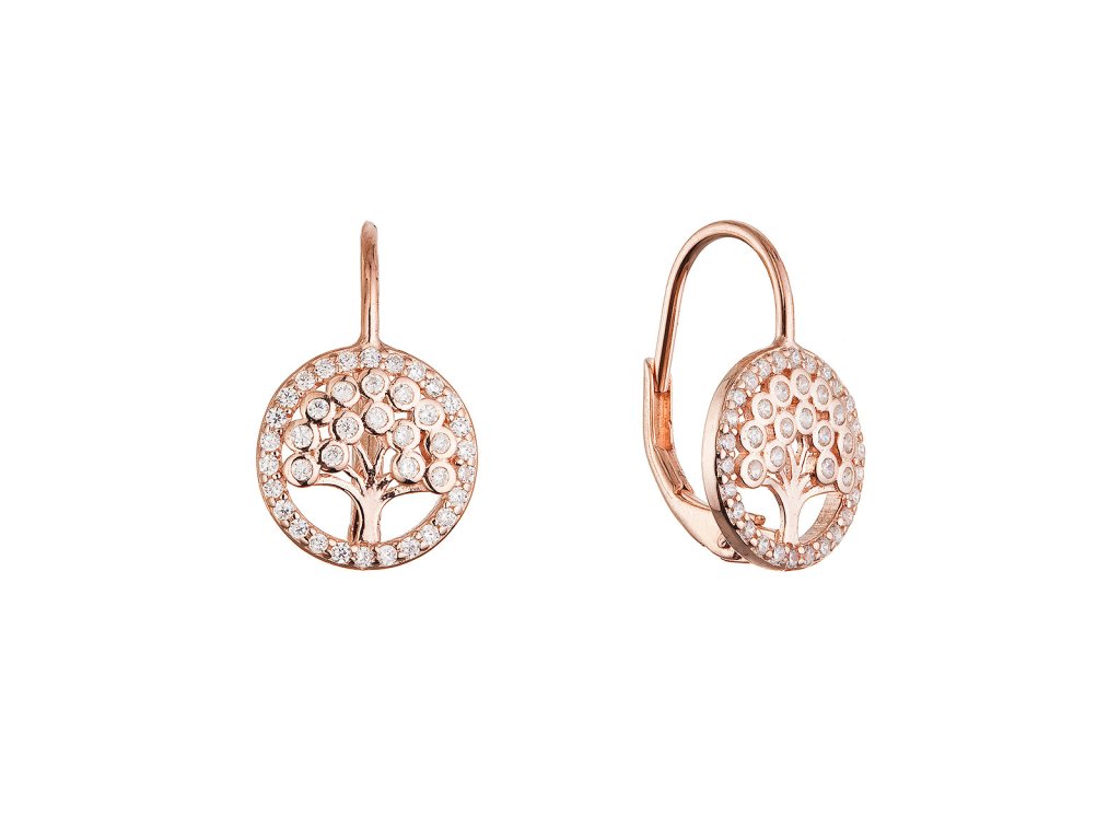 Pozlátené strieborné náušnice strom života so zirkónmi 11713.1 rose gold