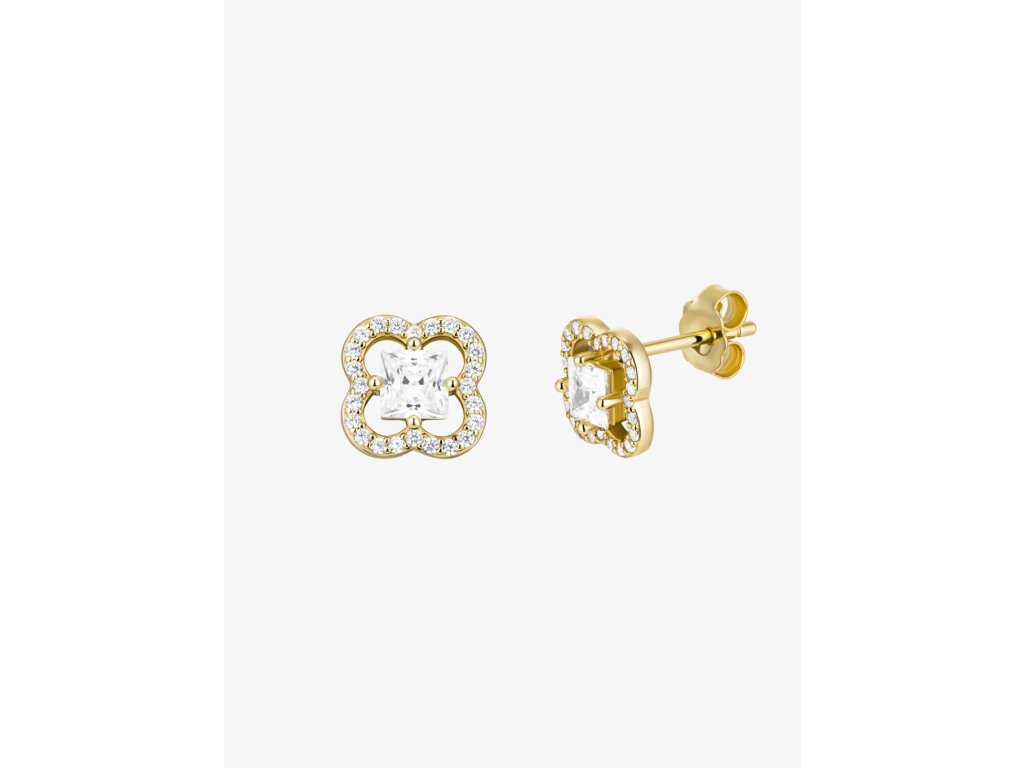 Pozlátené strieborné náušnice štvorlístok Lucky Leaf s kubickými zirkónmi Preciosa