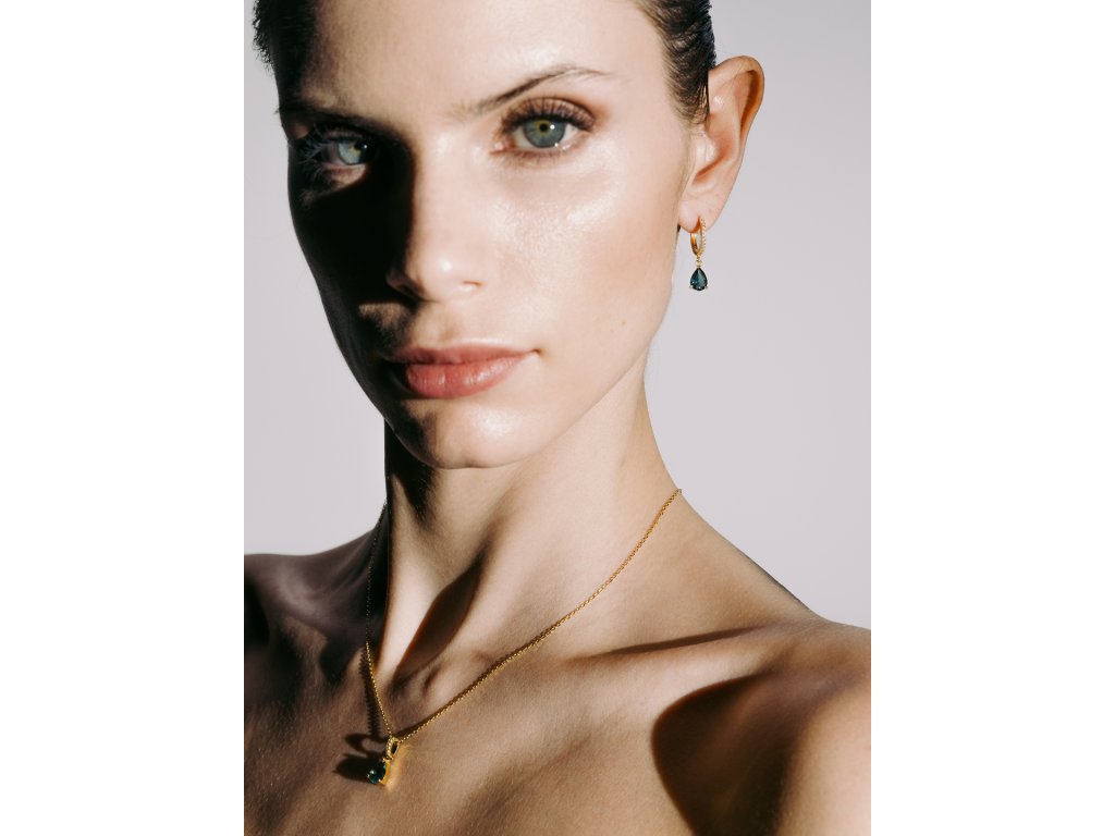 Pozlátené náušnice Vespera zaujmú kvapkovým kameňom kubickej zirkónie v jedinečnej modrej farbe montana, ktorá pripomína tajomný večerný horizont. Klapkové zapínanie zaisťuje pohodlné a bezpečné nosenie. Kovodiel náušníc je vysadený jemnými bielymi kamienkami kubickej zirkónie, ktoré dodávajú šperku trblietavý a noblesný vzhľad.