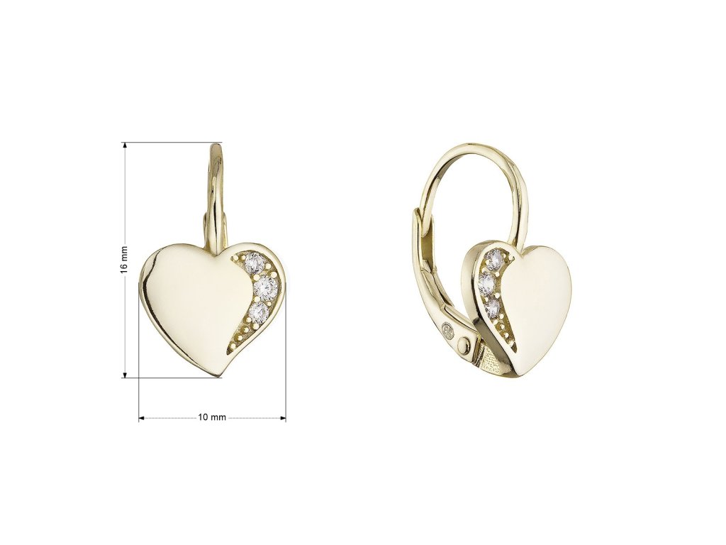 Pozlátené visiace náušnice srdiečka 11785.1